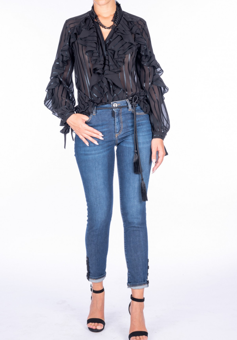 jeansy eureka z ozdobnym czarnym sznurkiem