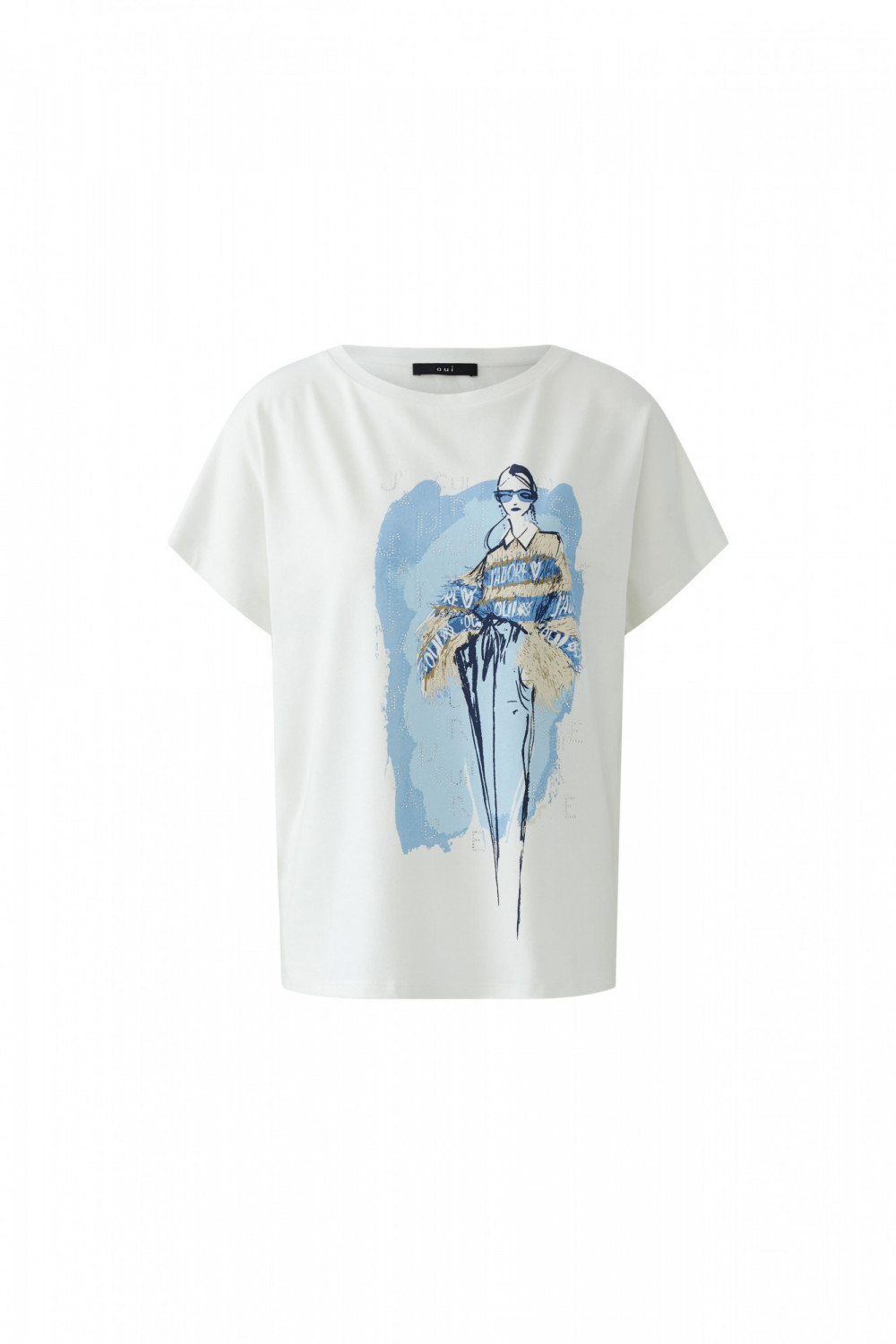 T-SHIRT BIAŁY OUI Z NIEBIESKIM NADRUKIEM